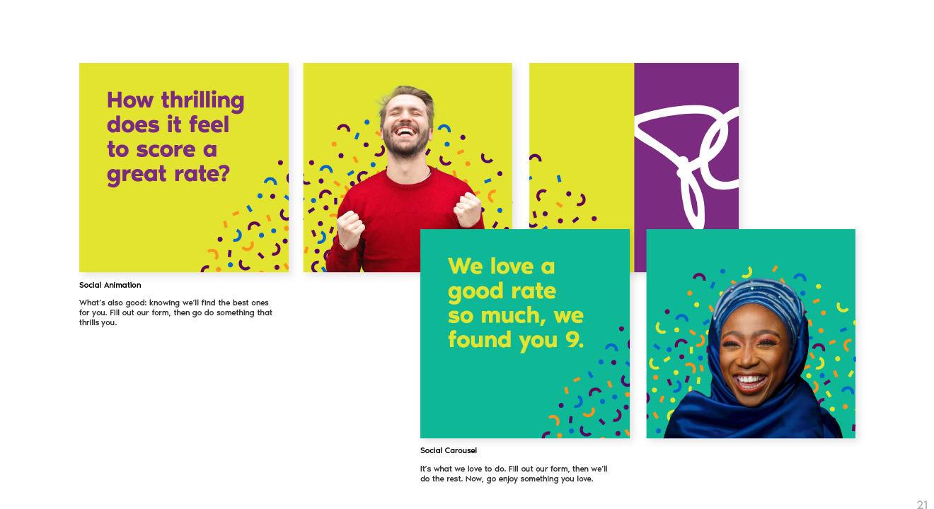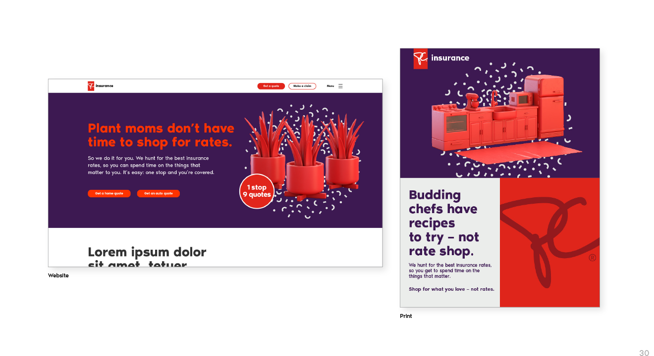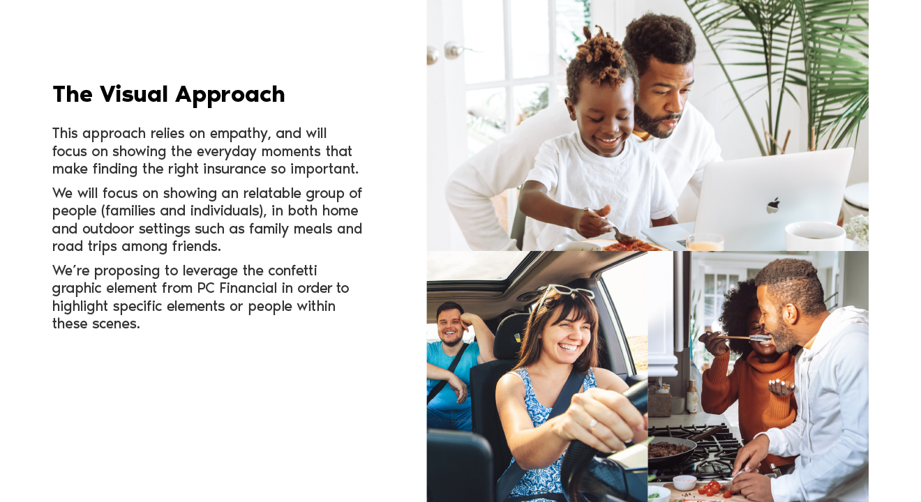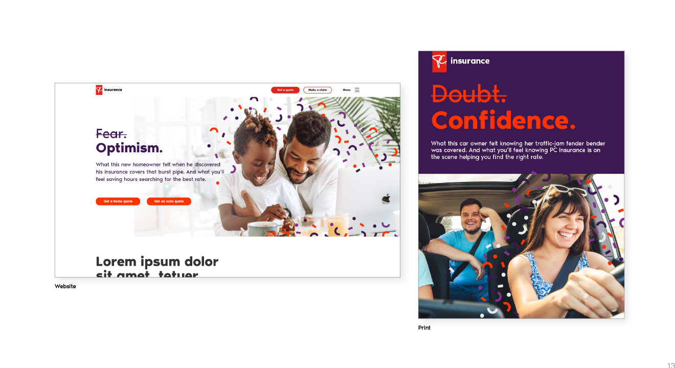 The first step in the research was to get a clear picture of the competition and the overall landscape of the home and auto insurance market. I examined the imagery and colour choices used by other insurance companies and noted which ones felt dated or overused. I also explored how non-traditional insurance brands connect with their audiences (particularly younger customers) by simplifying their messaging and using fresh, unconventional branding approaches.